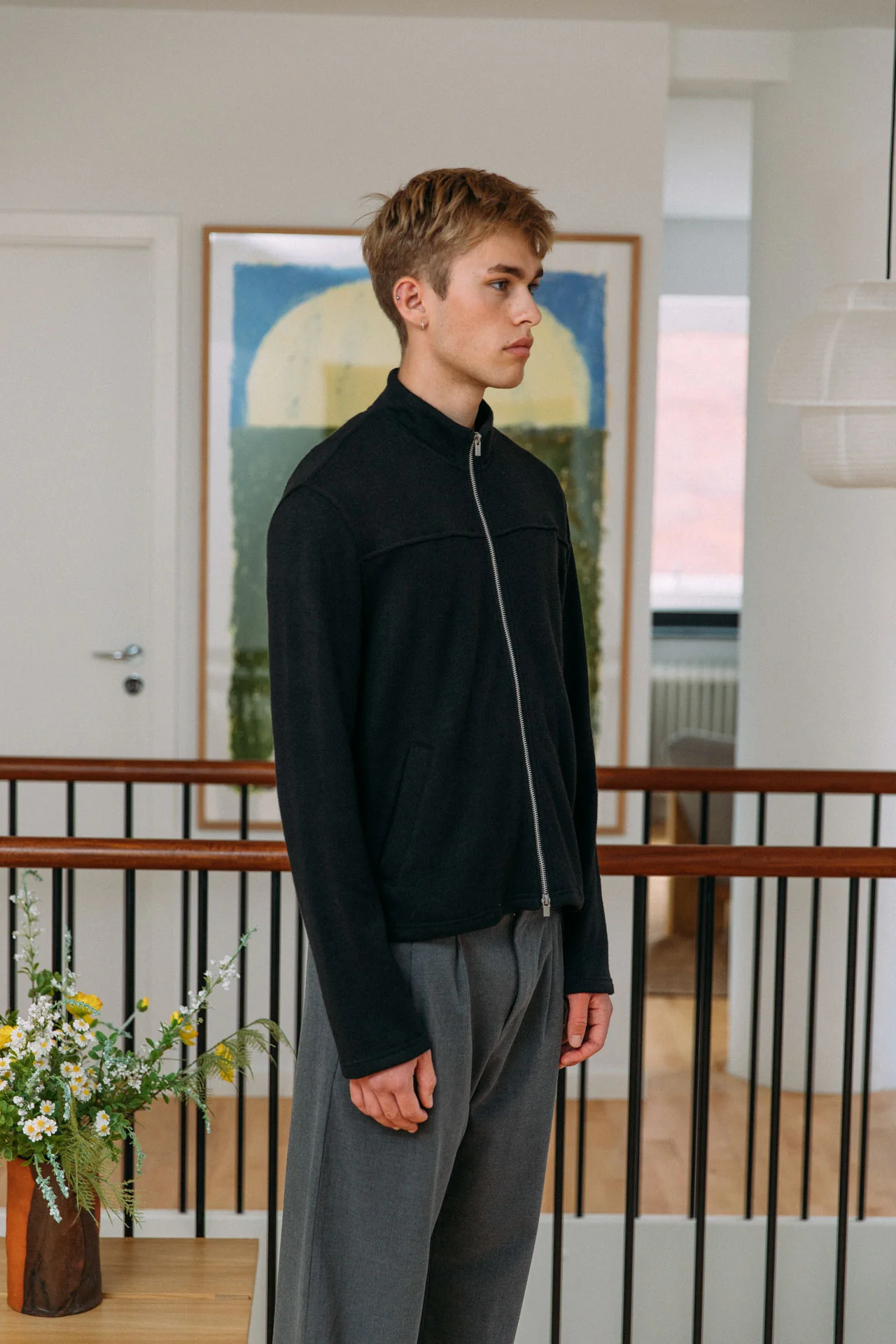 We always found with zip up jackets the collar is too high (touching the neck) and the body was too long so we've made our own perfect zip up knit jacket. It has a boxy and cropped fit and features double ended branded zips.