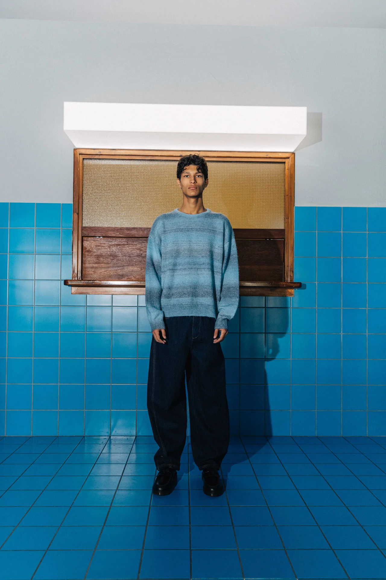 Think tidal walks, where blue mists fade into the horizon. Ocean is a classic knit crewneck with dropped shoulders and a boxy fit. Made from a custom gradient with natural fluctuations in each individual piece.Â